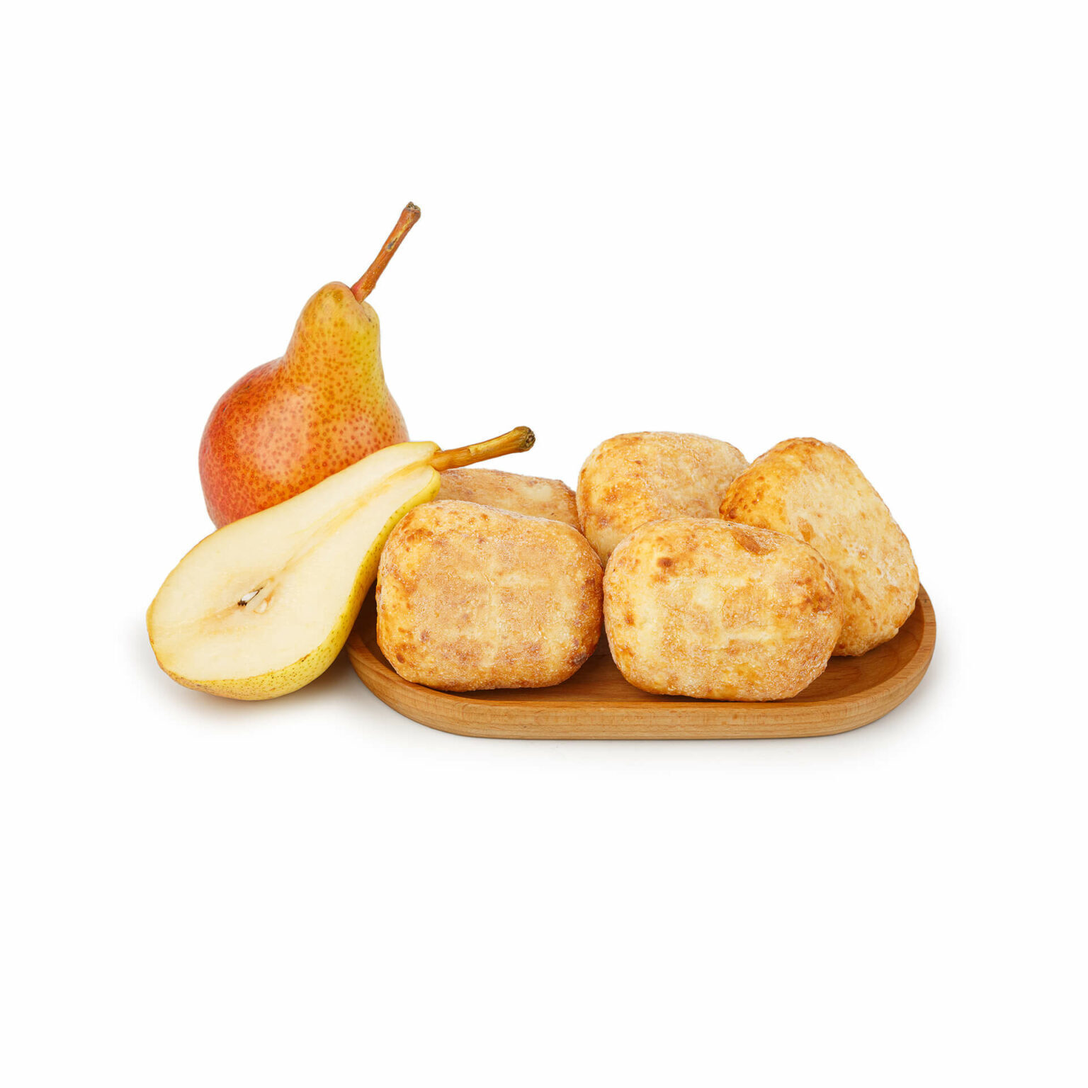 тесто: творог, сахар, крупа манная, мука пшеничная, крахмал,сыворотка молочная, масло подсолнечное; начинка: груша, сахар, вода, кислота лимонная, ароматизатор натуральный «Ваниль». Может содержать следы сельдерея.