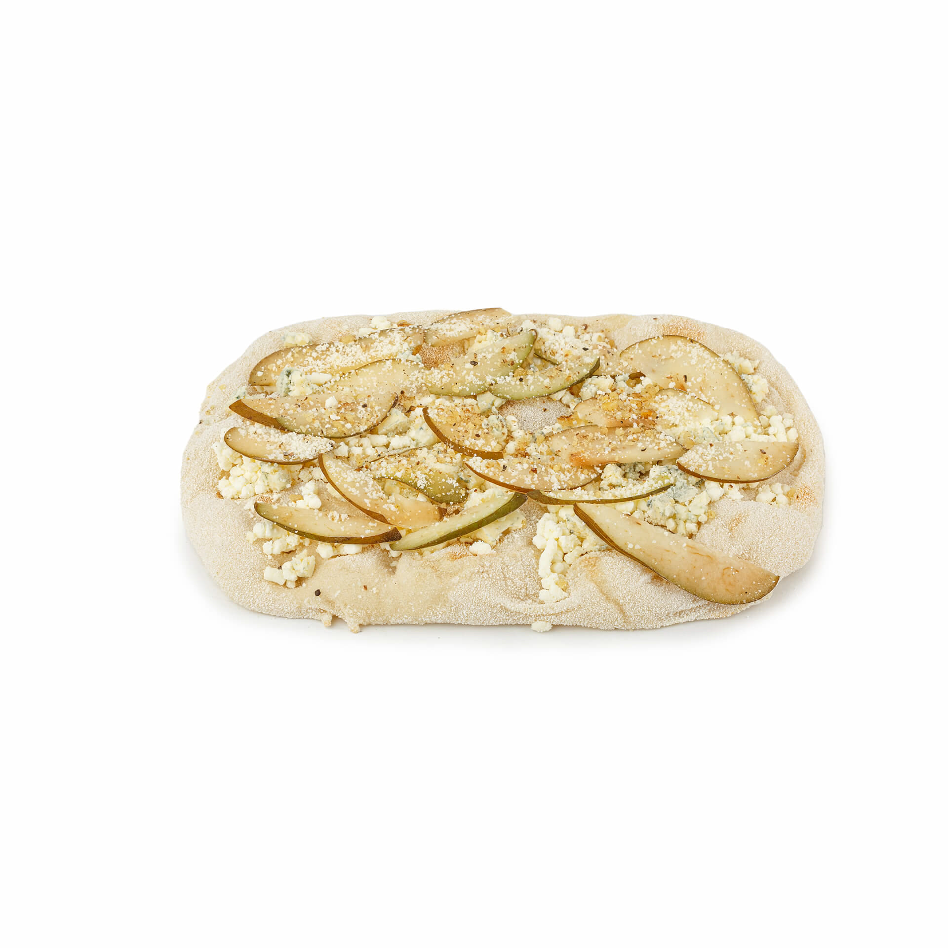 вода питьевая, мука пшеничная, мука соевая, мука рисовая, соль морская, масло оливковое нерафинированное высшего качества (Extra virgin olive oil), дрожжи хлебопекарные, масло подсолнечное, сыр моцарелла, груша, сыр горгонзола, сыр пармезан, грецкий орех, соус бешамель, перец чёрный.