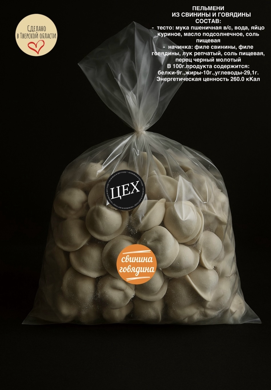 Пельмени ручной лепки сочетают в себе традиционный вкус и высокое качество ингредиентов. Тесто на основе пшеничной муки высшего сорта и куриного яйца - делает их невероятно нежными и вкусными. Начинка из свежего свиного и говяжьего фарша, с добавлением ароматного лука, соли и перца, они предлагают настоящую вкусовую симфонию, которая обязательно порадует любителей мясных деликатесов. Всего несколько штучек утолят голод и подарят удовольствие от каждого съеденного кусочка. Порадуйте себя этим вкусным продуктом!