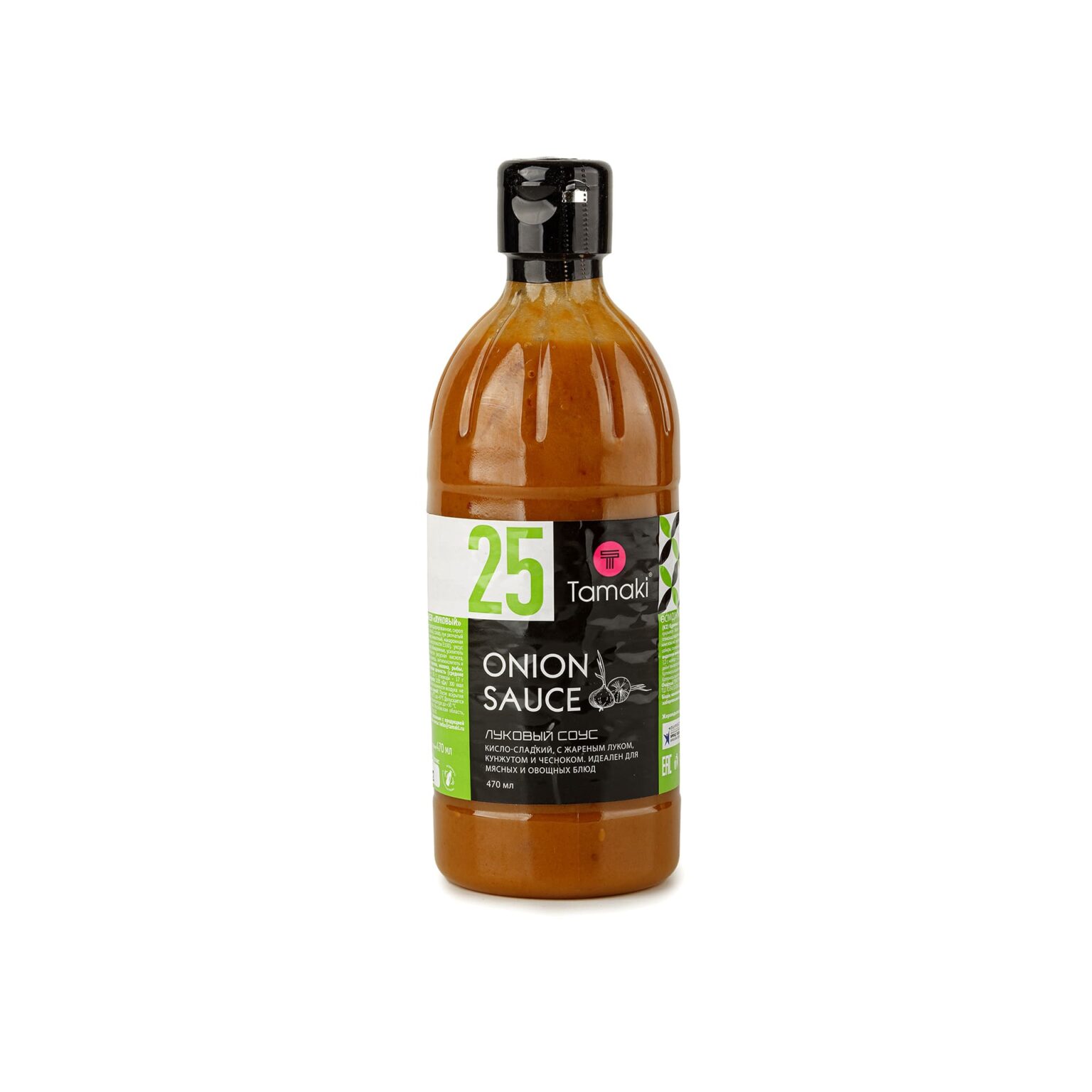 вода, масло подсолнечное рафинированное дезодорированное, сироп глюкозно-фруктозный, соус соевый (вода, соя, пшеница, соль), сахар, лук репчатый жареный порошок (лук репчатый, масло подсолнечное, макаронная крупка, уксус яблочный, соль, чеснок сушёный молотый, семена кунжута обжаренные, усилитель вкуса и аромата глутамат натрия, регулятор кислотности уксусная кислота